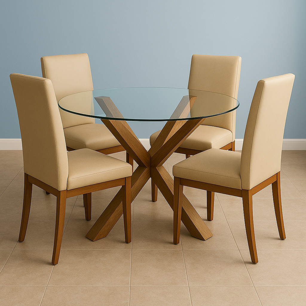Precio Cyber Incluye Mesa Circular Base Sur + 4 Sillas Vestidas Puedes modificar el color del revestimiento de las sillas...