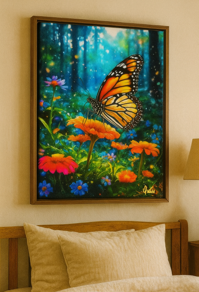 Déjate conquistar por ésta hermosa pintura de mariposa en acrílico, sobre tela en lienzo en lino, con bastidor de madera,...
