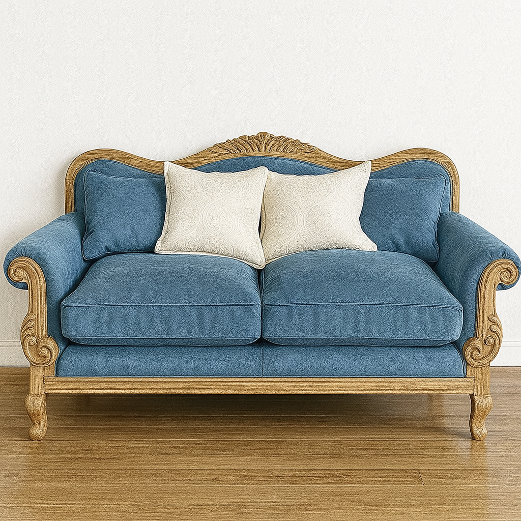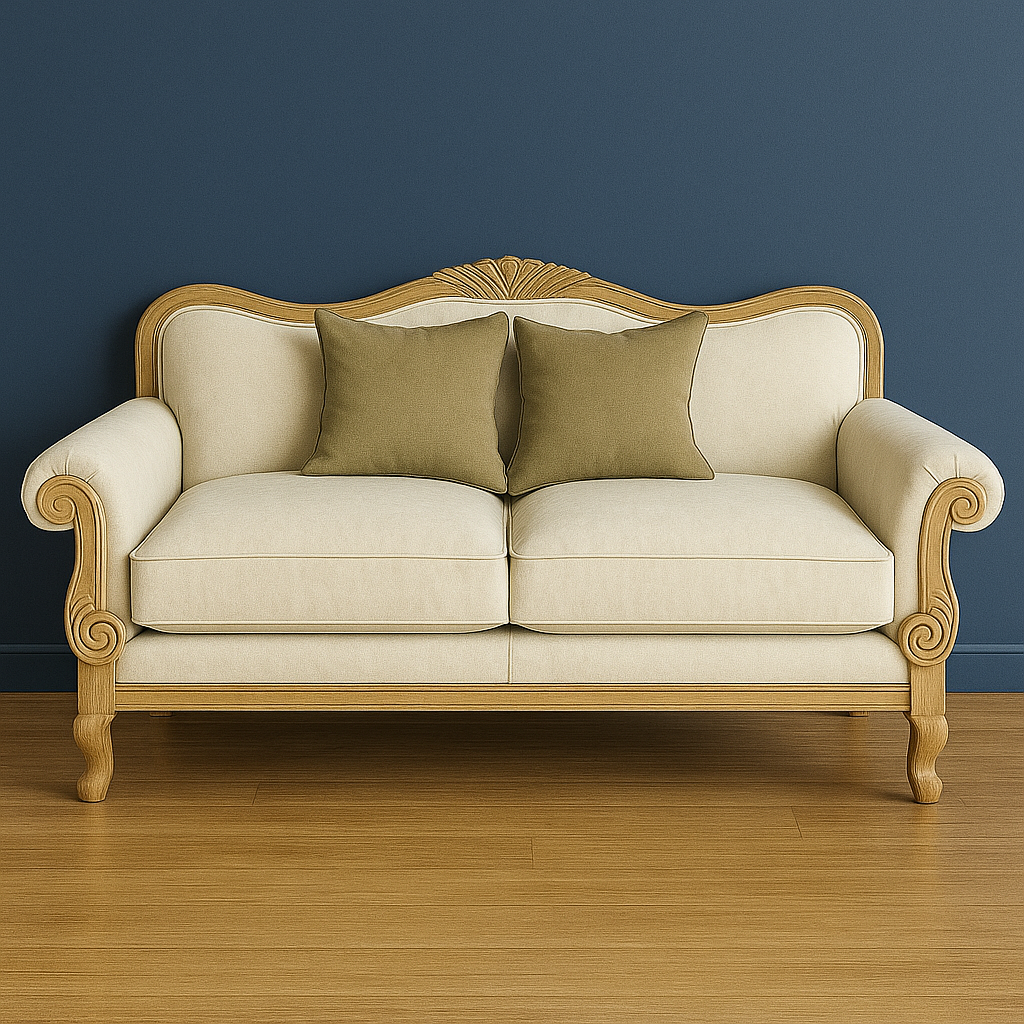 Sofá Clásico Vintage Sumérgete en la elegancia atemporal con nuestro sofá de diseño clásico, fabricado artesanalmente en madera de encina...