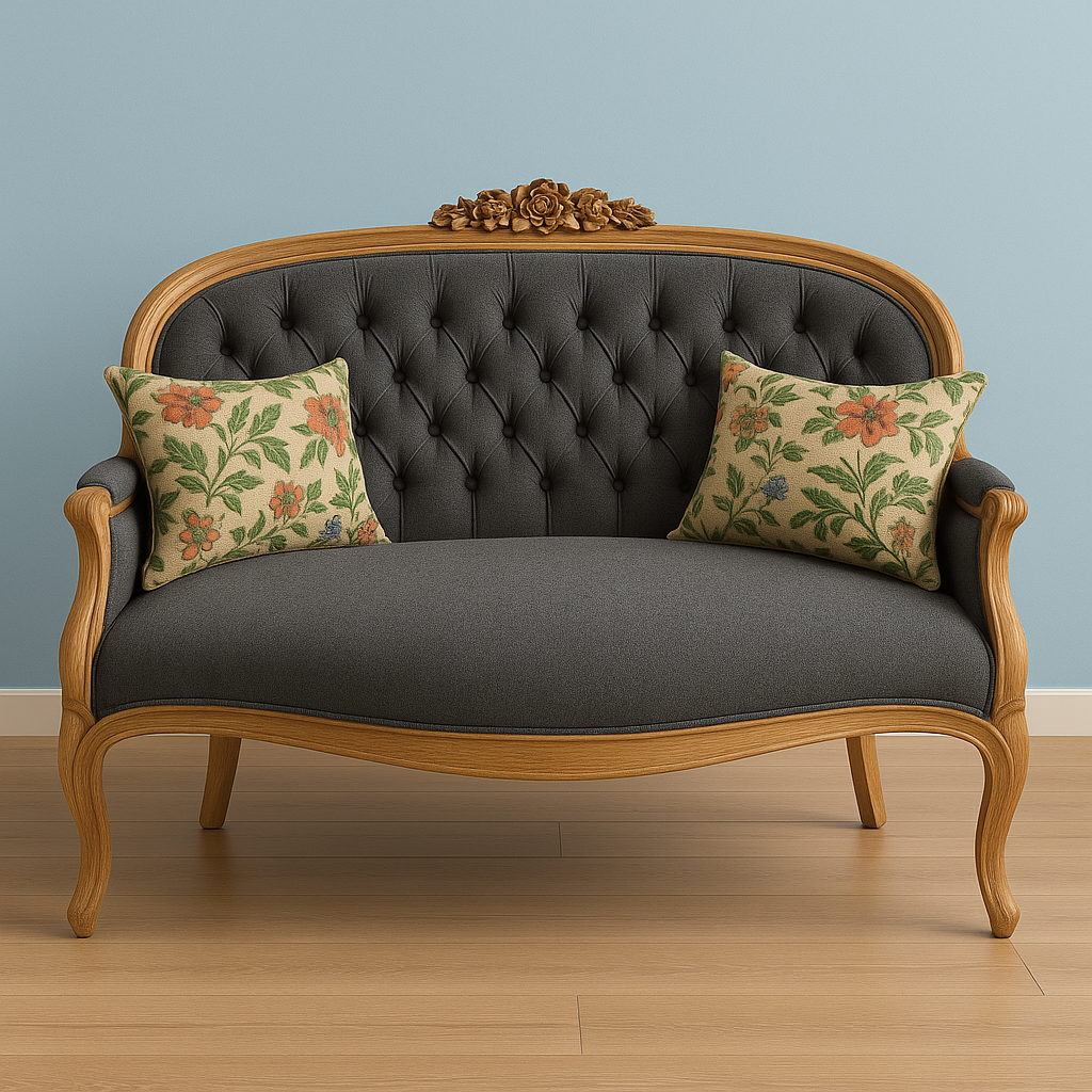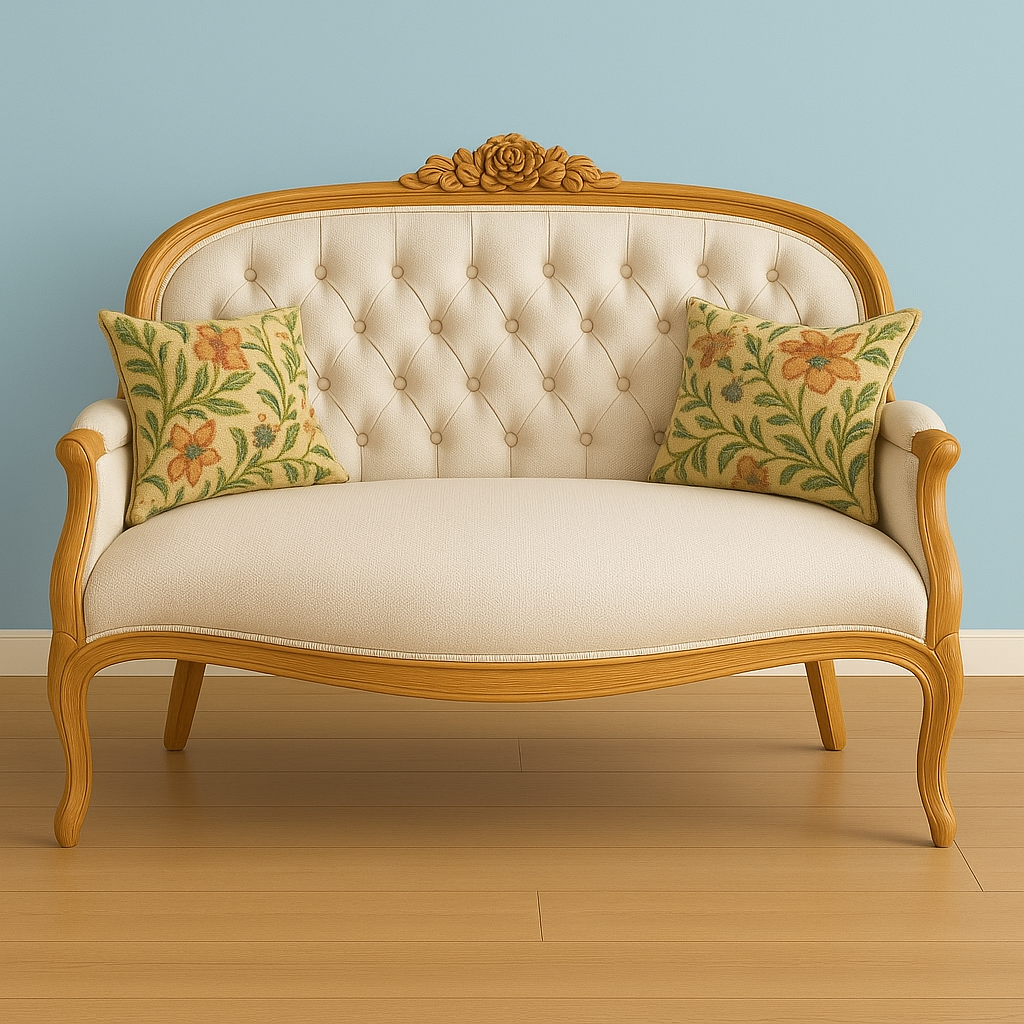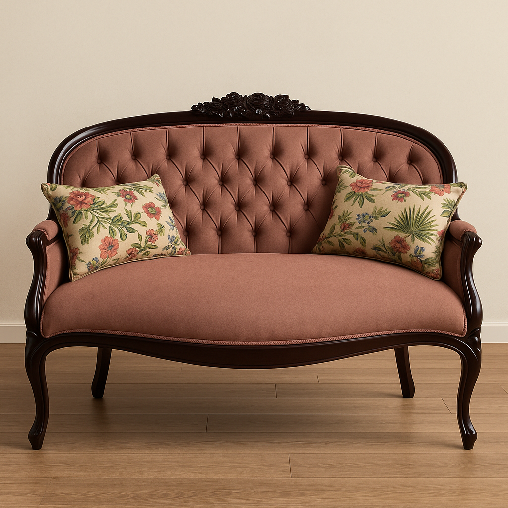 Sofá Vintage Personalizable Un sofá elegante, con diseño clásico y estructura de madera tallada a mano, que combina confort, durabilidad...